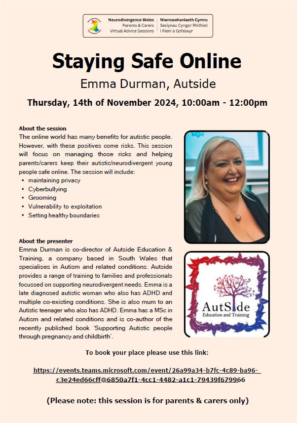The online world has many benefits for autistic people. However, with these positives come risks. This session will focus on managing those risks and helping parents/carers keep their autistic/neurodivergent young people safe online.