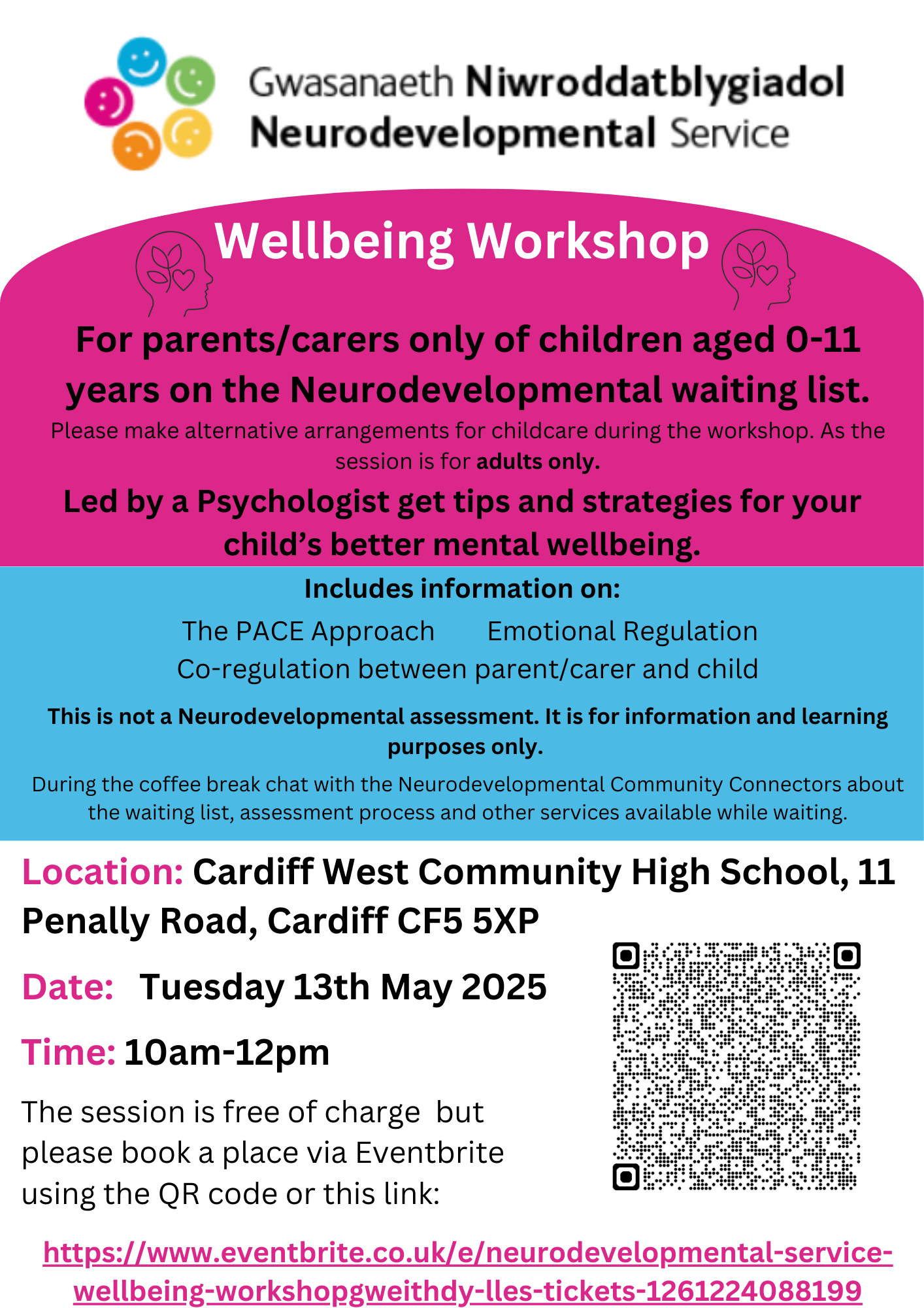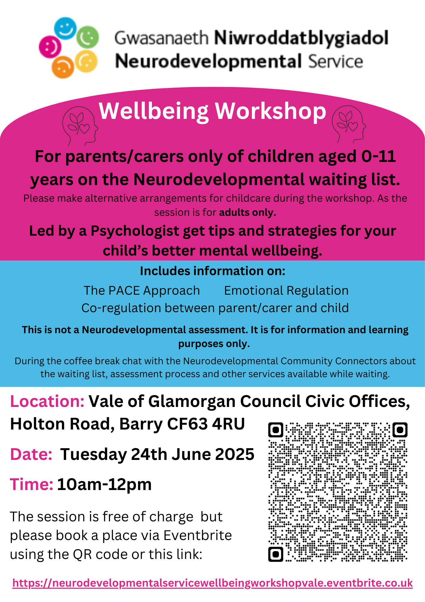 These events are not assessments. They are run to provide information and raise awareness about Neurodevelopmental needs and support available.